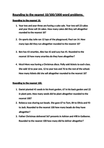 Word Problems Rounding To The Nearest 10 100 1000 Teaching Resources